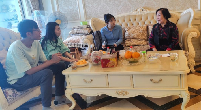 2021年4月23日下午,yl23455永利集团党办主任胡蕾同志、全国样板党支部——本科生第二支部成员龚添爱同志、唐家熠同志、王骞同志一同前往拜访学院退休老党员何灿芝老师。