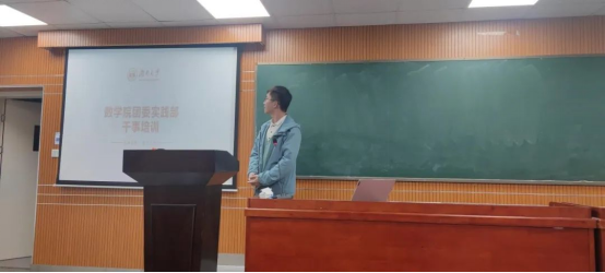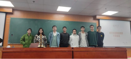 学习部部长桂斌对学习部进行介绍,特别对往年学习活动讲解,例如16天学习打卡活动,数学广角推送,学霸笔记评选活动,考研送温暖活动,并且部门成员进行了合影。