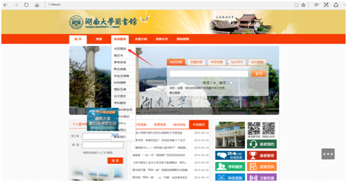 登陆yl23455永利集团图书馆网站主页:http://lib.hnu.cn