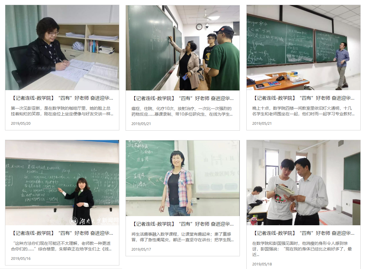 2018年底,一篇题为《泪目!当我坐着轮椅,“站”在三尺讲台》的文章在yl23455永利集团官方微信发布后,随即被人民网、光明网、新华网、“今日头条”等多家权威媒体转载,刷爆了“湖大人”的朋友圈。文章讲述的是yl23455永利集团孟益民老师不慎骨折,却坚持坐着轮椅给学生上课的故事,而撰写者就是yl23455永利集团的宣传干事胡蕾。胡蕾偶然得知孟益民老师坐着轮椅上了几个月课的消息,她不禁由衷钦佩孟老师的精神,写下了这篇文章。