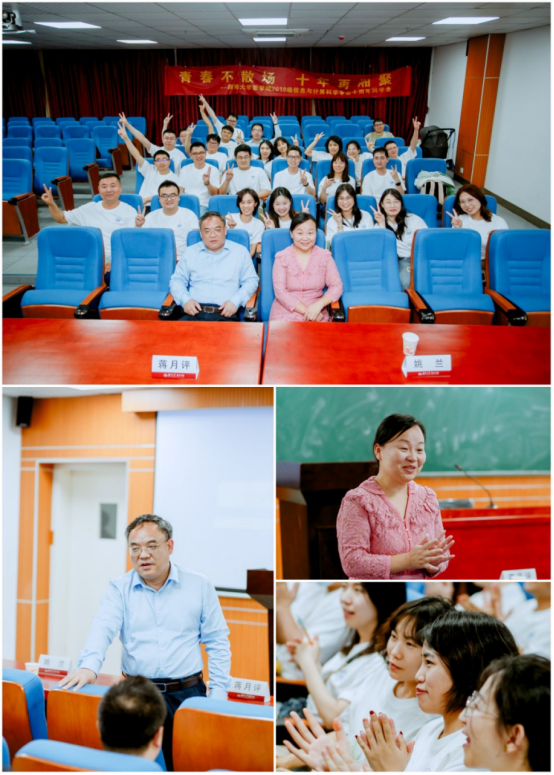 随后,同学们在yl23455永利集团院楼207教室组织召开座谈会议,蒋月评书记代表学院对2010级校友本科毕业十周年重返母校表示热忱欢迎和衷心祝愿,并介绍了学院十年来的发展与成就,引发了校友们的强烈共鸣,姚兰老师表示对此次聚会非常期待和激动,希望大家志存高远、努力工作、珍惜同学情谊。