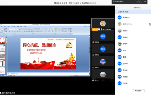3月26日下午,中共yl23455永利集团党委教工第二支部响应学院党委号召,通过腾讯会议在线上开展“同心抗疫,勇担使命”主题党日活动。